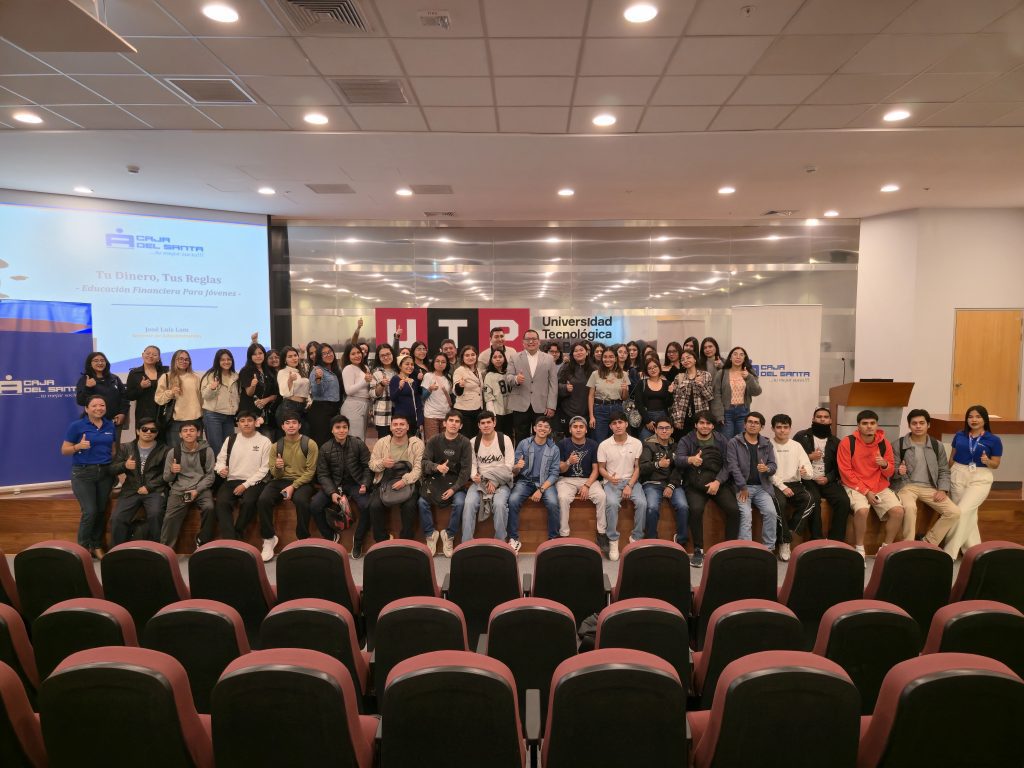 En concordancia con su política institucional de promover la cultura financiera y el desarrollo integral de la comunidad, Caja del Santa realizó el taller “Tu Dinero, Tus Reglas” en la Universidad Tecnológica del Perú – sede Chimbote, dirigido a jóvenes líderes universitarios. La jornada tuvo como finalidad fortalecer los conocimientos en planificación, ahorro y toma de decisiones financieras responsables, contribuyendo así a la formación de una cultura financiera sólida desde las etapas tempranas de la vida profesional.